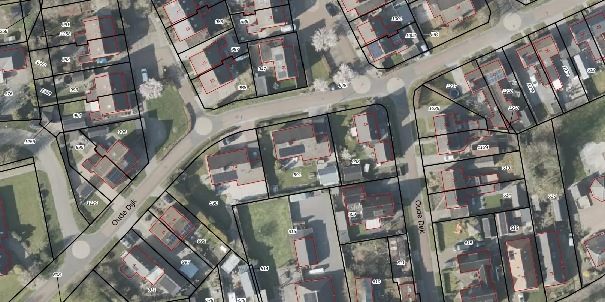 Het perceel waarop Oude Dijk 12 staat heeft een oppervlakte van 580 m². Dit is een groot perceel. De perceeloppervlakte wordt geregistreerd door het Kadaster. Gedetailleerde informatie over de maten van dit perceel kunt u vinden in het rapport Kadastrale kaart met maatvoering van Oude Dijk 12.