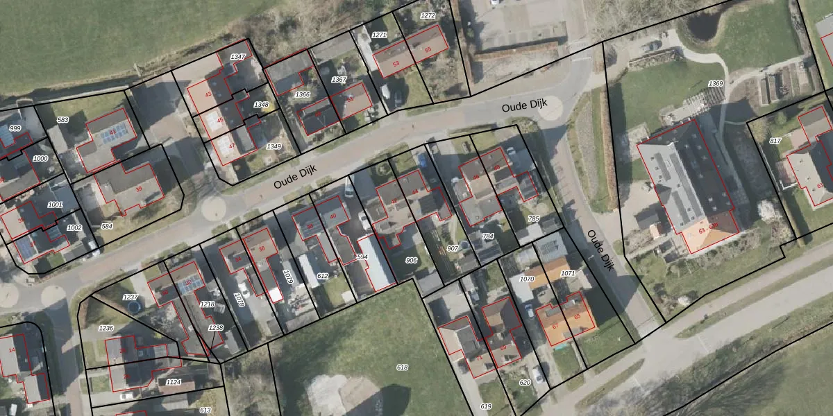Het perceel waarop Oude Dijk 44 staat heeft een oppervlakte van 331 m². Dit is een groot perceel. De perceeloppervlakte wordt geregistreerd door het Kadaster. Gedetailleerde informatie over de maten van dit perceel kunt u vinden in het rapport Kadastrale kaart met maatvoering van Oude Dijk 44.