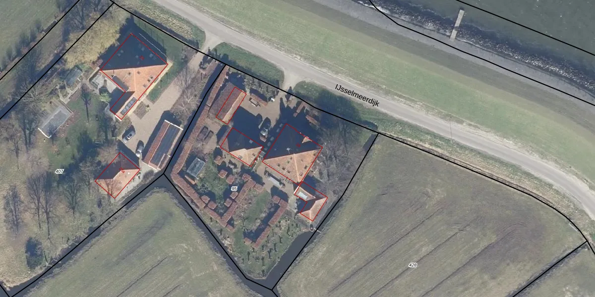Het perceel waarop IJsselmeerdijk 29 staat heeft een oppervlakte van 2965 m². Dit is een zeer groot perceel. De perceeloppervlakte wordt geregistreerd door het Kadaster. Gedetailleerde informatie over de maten van dit perceel kunt u vinden in het rapport Kadastrale kaart met maatvoering van IJsselmeerdijk 29.
