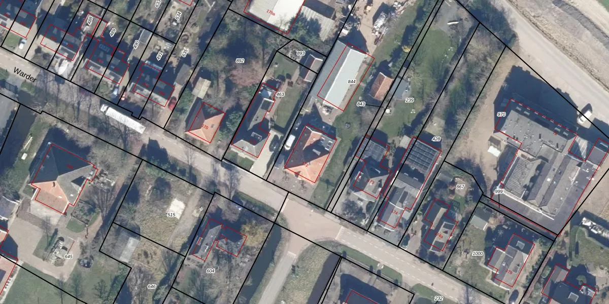 Het perceel waarop Warder 172 staat heeft een oppervlakte van 2070 m². Dit is een zeer groot perceel. De perceeloppervlakte wordt geregistreerd door het Kadaster. Gedetailleerde informatie over de maten van dit perceel kunt u vinden in het rapport Kadastrale kaart met maatvoering van Warder 172.