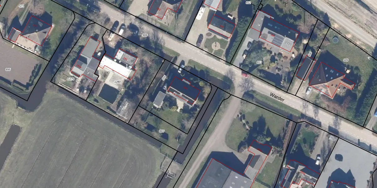 Het perceel waarop Warder 183 staat heeft een oppervlakte van 795 m². Dit is een groot perceel. De perceeloppervlakte wordt geregistreerd door het Kadaster. Gedetailleerde informatie over de maten van dit perceel kunt u vinden in het rapport Kadastrale kaart met maatvoering van Warder 183.