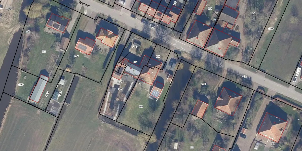 Het perceel waarop Warder 58 staat heeft een oppervlakte van 1095 m². Dit is een zeer groot perceel. De perceeloppervlakte wordt geregistreerd door het Kadaster. Gedetailleerde informatie over de maten van dit perceel kunt u vinden in het rapport Kadastrale kaart met maatvoering van Warder 58.