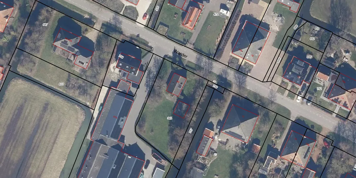 Het perceel waarop Warder 69 staat heeft een oppervlakte van 1030 m². Dit is een zeer groot perceel. De perceeloppervlakte wordt geregistreerd door het Kadaster. Gedetailleerde informatie over de maten van dit perceel kunt u vinden in het rapport Kadastrale kaart met maatvoering van Warder 69.
