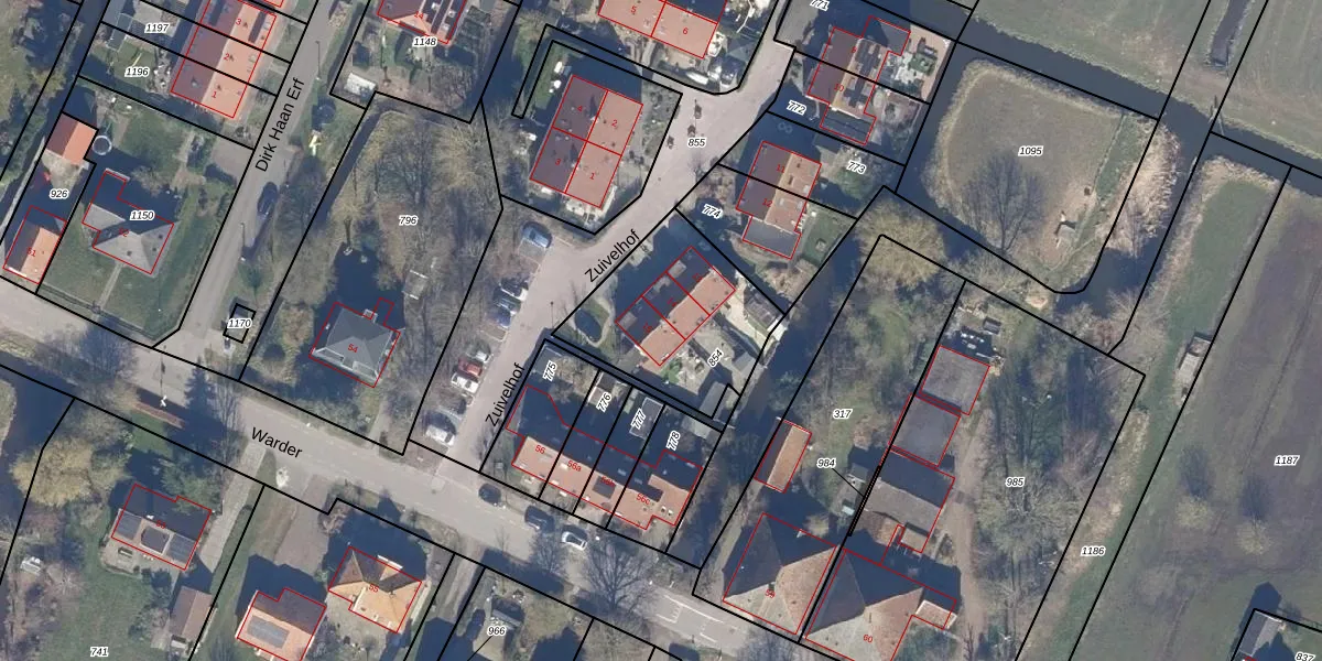 Zuivelhof 15 is gelegen op kadastraal perceel WDR01C854. Deze kadastrale aanduiding is uniek en wordt gebruikt door het Kadaster om eigendomsrechten en andere zakelijke rechten vast te leggen. Het perceel maakt onderdeel uit van de kadastrale gemeente Warder.