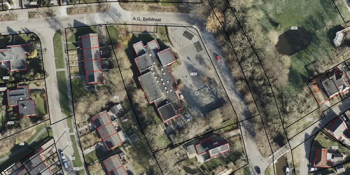 Het perceel waarop A.G. Bellstraat 14 staat heeft een oppervlakte van 3500 m². Dit is een zeer groot perceel. De perceeloppervlakte wordt geregistreerd door het Kadaster. Gedetailleerde informatie over de maten van dit perceel kunt u vinden in het rapport Kadastrale kaart met maatvoering van A.G. Bellstraat 14.