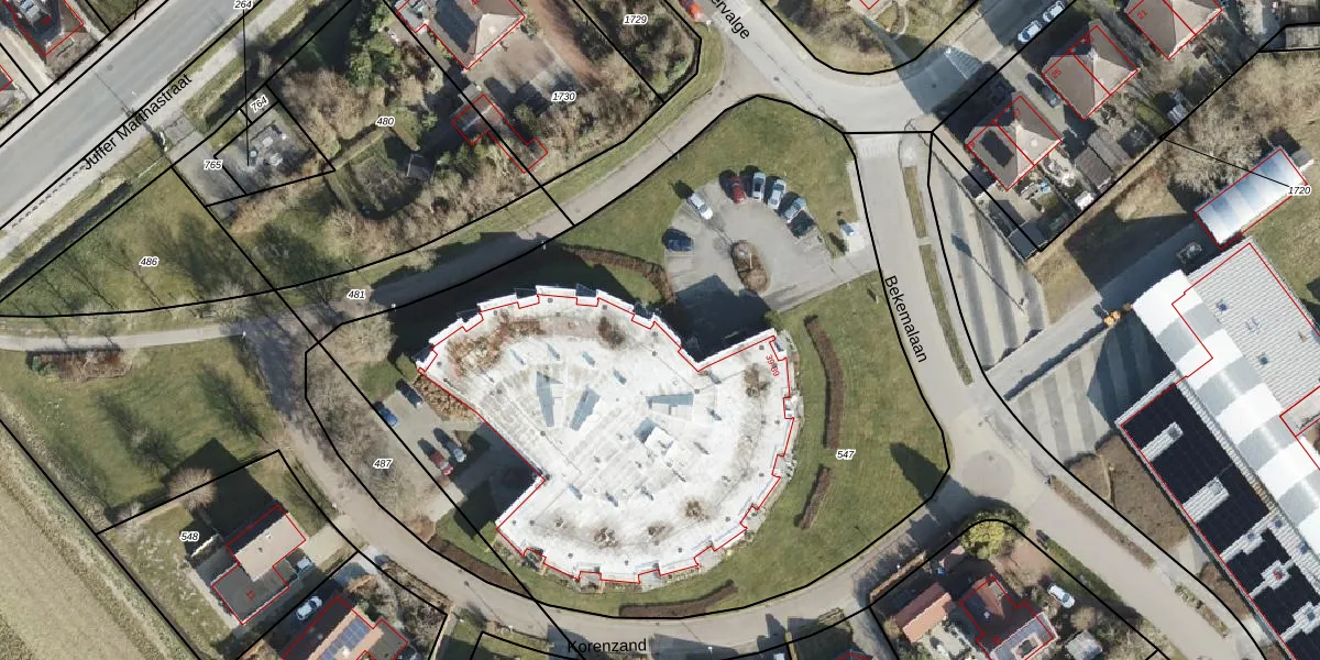 Het perceel waarop Bekemalaan 63 staat heeft een oppervlakte van 4573 m². Dit is een zeer groot perceel. De perceeloppervlakte wordt geregistreerd door het Kadaster. Gedetailleerde informatie over de maten van dit perceel kunt u vinden in het rapport Kadastrale kaart met maatvoering van Bekemalaan 63.