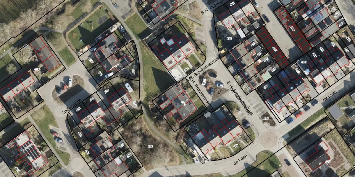 Het perceel waarop B.H. Broekemastraat 5 staat heeft een oppervlakte van 490 m². Dit is een groot perceel. De perceeloppervlakte wordt geregistreerd door het Kadaster. Gedetailleerde informatie over de maten van dit perceel kunt u vinden in het rapport Kadastrale kaart met maatvoering van B.H. Broekemastraat 5.