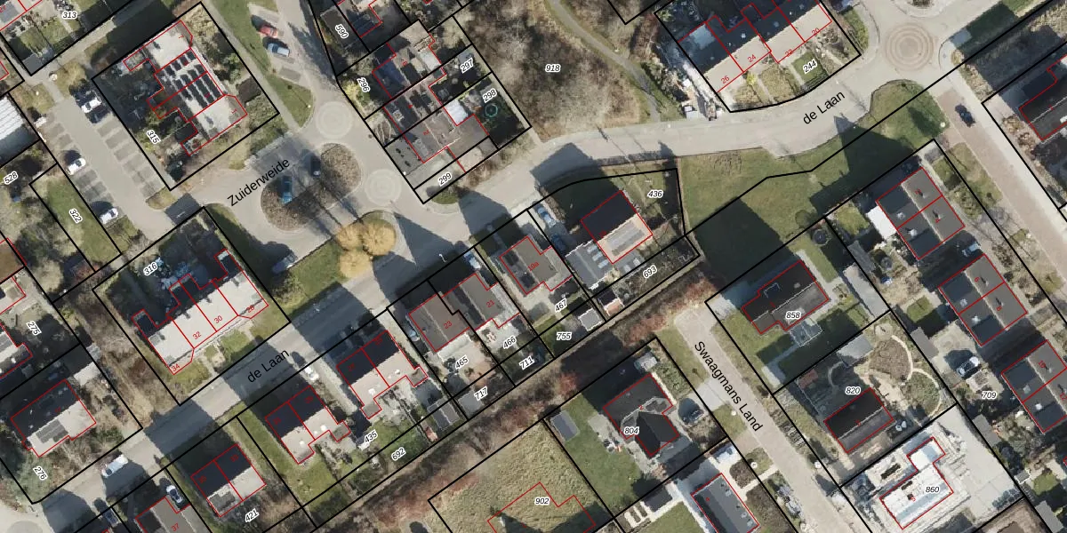 Gebruik de zoekbalk of klik op een perceel voor informatie over de adressen binnen dit perceel.