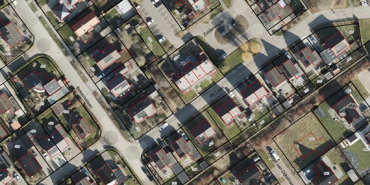 Het perceel waarop de Laan 34 staat heeft een oppervlakte van 693 m². Dit is een groot perceel. De perceeloppervlakte wordt geregistreerd door het Kadaster. Gedetailleerde informatie over de maten van dit perceel kunt u vinden in het rapport Kadastrale kaart met maatvoering van de Laan 34.