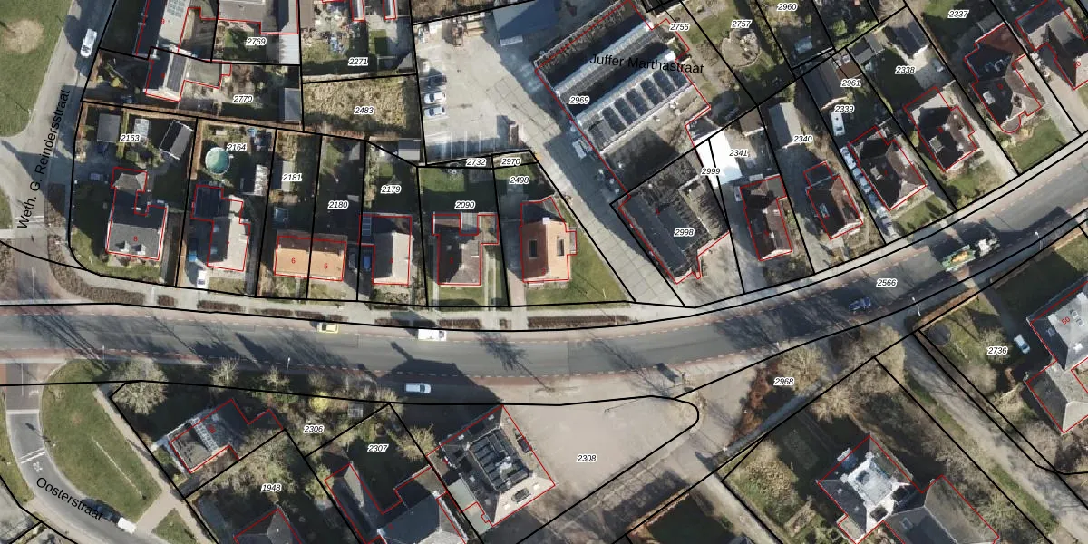Juffer Marthastraat 2 is gelegen op kadastraal perceel WFM00C2498. Deze kadastrale aanduiding is uniek en wordt gebruikt door het Kadaster om eigendomsrechten en andere zakelijke rechten vast te leggen. Het perceel maakt onderdeel uit van de kadastrale gemeente Warffum.