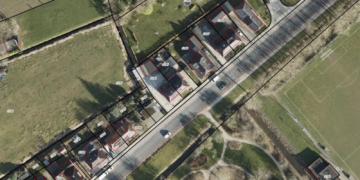 Juffer Marthastraat 29-A is gelegen op kadastraal perceel WFM00D1245. Deze kadastrale aanduiding is uniek en wordt gebruikt door het Kadaster om eigendomsrechten en andere zakelijke rechten vast te leggen. Het perceel maakt onderdeel uit van de kadastrale gemeente Warffum.