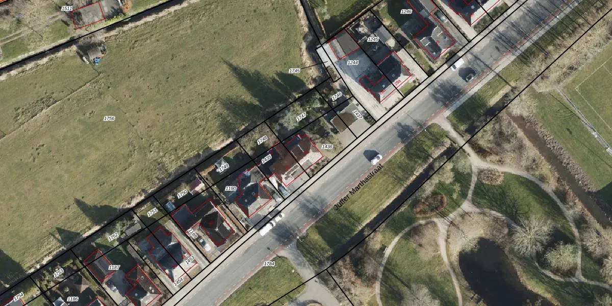 Het perceel waarop Juffer Marthastraat 30 staat heeft een oppervlakte van 277 m². Dit is een middelgroot perceel. De perceeloppervlakte wordt geregistreerd door het Kadaster. Gedetailleerde informatie over de maten van dit perceel kunt u vinden in het rapport Kadastrale kaart met maatvoering van Juffer Marthastraat 30.