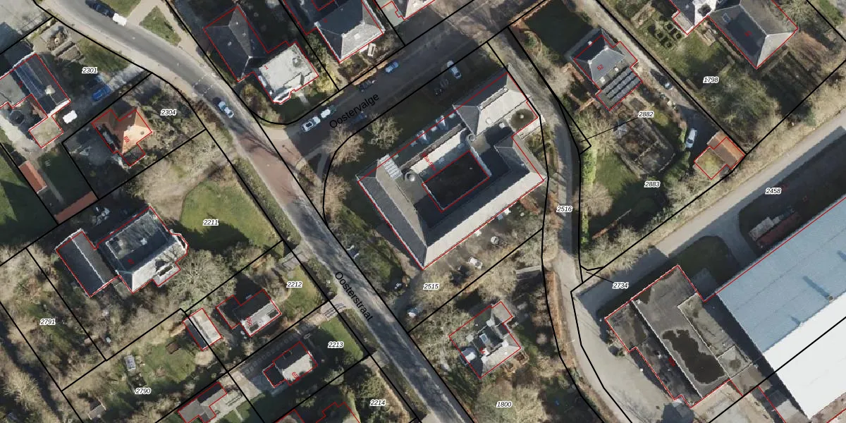 Het perceel waarop Oosterstraat 56-L staat heeft een oppervlakte van 2305 m². Dit is een zeer groot perceel. De perceeloppervlakte wordt geregistreerd door het Kadaster. Gedetailleerde informatie over de maten van dit perceel kunt u vinden in het rapport Kadastrale kaart met maatvoering van Oosterstraat 56-L.