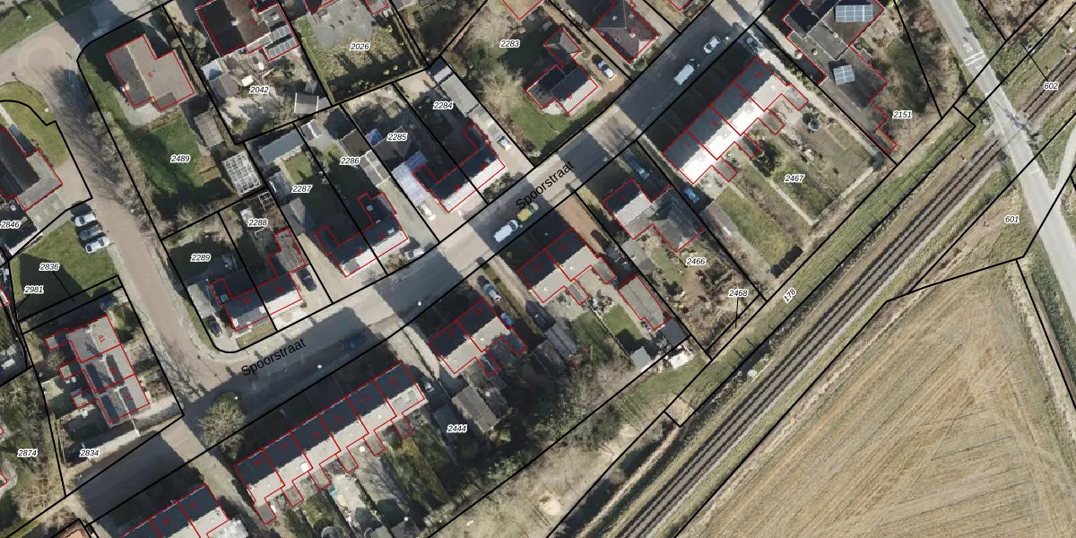Het perceel waarop Spoorstraat 13 staat heeft een oppervlakte van 3987 m². Dit is een zeer groot perceel. De perceeloppervlakte wordt geregistreerd door het Kadaster. Gedetailleerde informatie over de maten van dit perceel kunt u vinden in het rapport Kadastrale kaart met maatvoering van Spoorstraat 13.