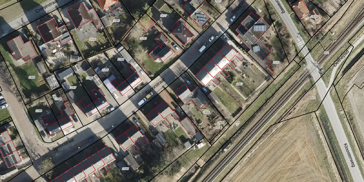 Het perceel waarop Spoorstraat 9 staat heeft een oppervlakte van 568 m². Dit is een groot perceel. De perceeloppervlakte wordt geregistreerd door het Kadaster. Gedetailleerde informatie over de maten van dit perceel kunt u vinden in het rapport Kadastrale kaart met maatvoering van Spoorstraat 9.