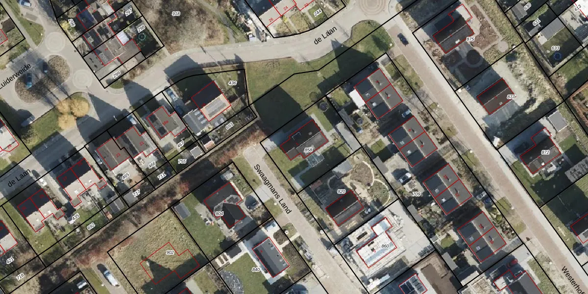Het perceel waarop Swaagmans Land 1 staat heeft een oppervlakte van 588 m². Dit is een groot perceel. De perceeloppervlakte wordt geregistreerd door het Kadaster. Gedetailleerde informatie over de maten van dit perceel kunt u vinden in het rapport Kadastrale kaart met maatvoering van Swaagmans Land 1.