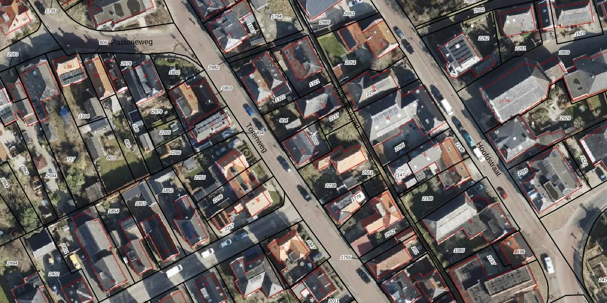 Gebruik de zoekbalk of klik op een perceel voor informatie over de adressen binnen dit perceel.