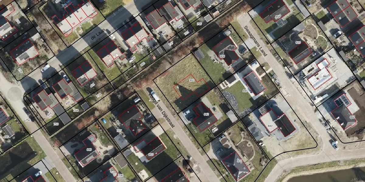 Het perceel waarop Voogd van Dijkstraat 1 staat heeft een oppervlakte van 605 m². Dit is een groot perceel. De perceeloppervlakte wordt geregistreerd door het Kadaster. Gedetailleerde informatie over de maten van dit perceel kunt u vinden in het rapport Kadastrale kaart met maatvoering van Voogd van Dijkstraat 1.