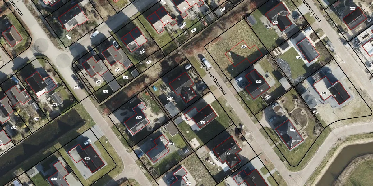 Het perceel waarop Voogd van Dijkstraat 2 staat heeft een oppervlakte van 559 m². Dit is een groot perceel. De perceeloppervlakte wordt geregistreerd door het Kadaster. Gedetailleerde informatie over de maten van dit perceel kunt u vinden in het rapport Kadastrale kaart met maatvoering van Voogd van Dijkstraat 2.