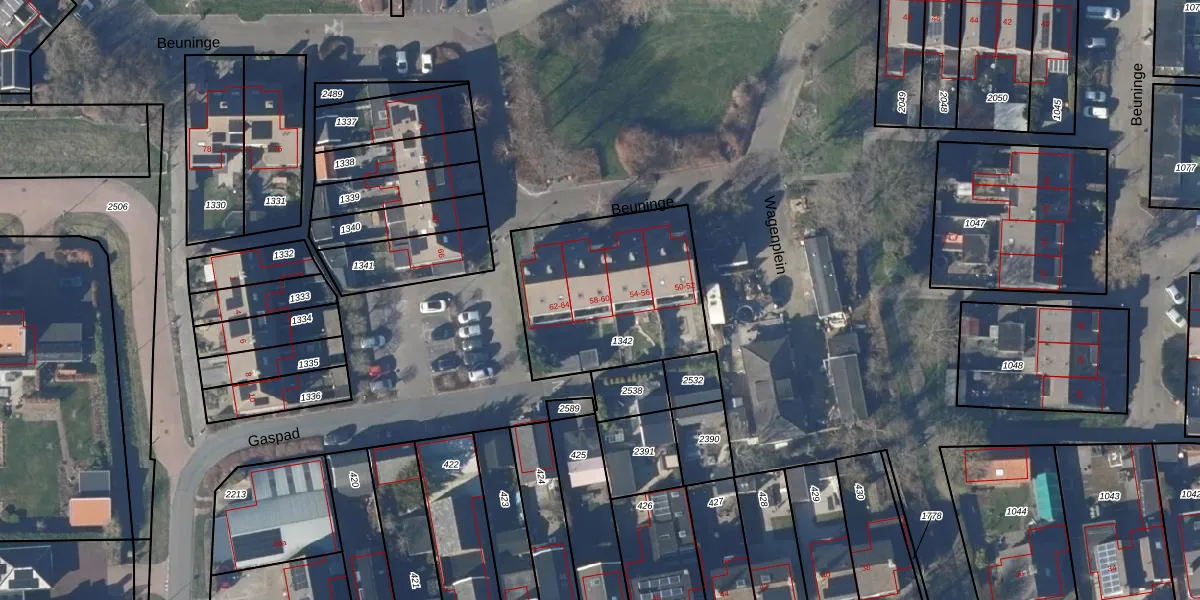 Het perceel waarop Beuninge 58 staat heeft een oppervlakte van 758 m². Dit is een groot perceel. De perceeloppervlakte wordt geregistreerd door het Kadaster. Gedetailleerde informatie over de maten van dit perceel kunt u vinden in het rapport Kadastrale kaart met maatvoering van Beuninge 58.