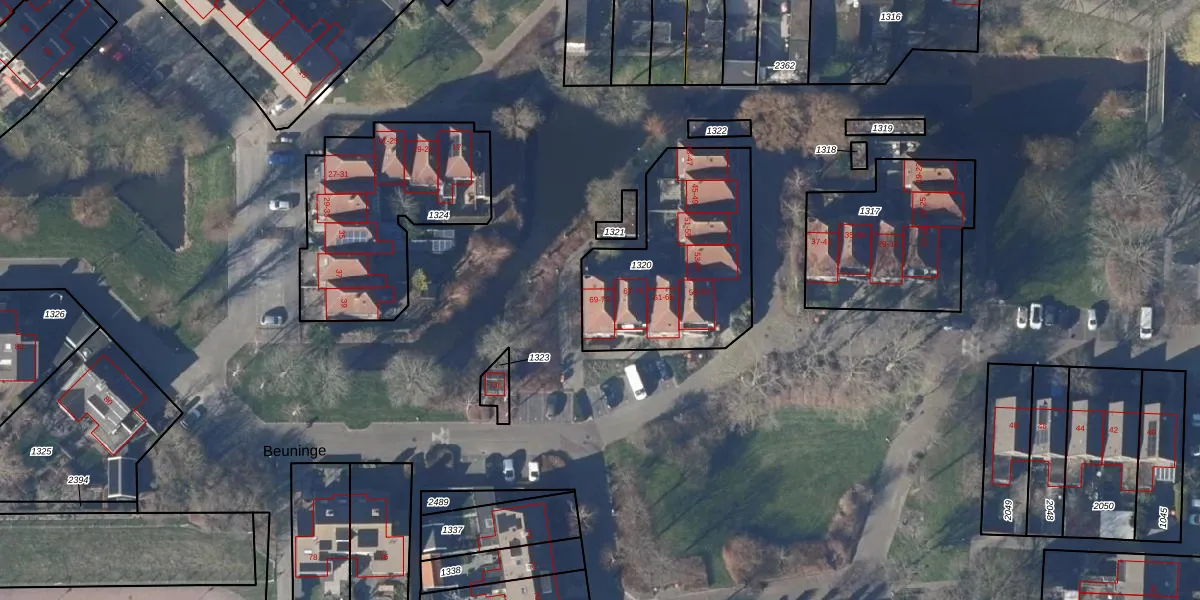 Het perceel waarop Beuninge 69 staat heeft een oppervlakte van 760 m². Dit is een groot perceel. De perceeloppervlakte wordt geregistreerd door het Kadaster. Gedetailleerde informatie over de maten van dit perceel kunt u vinden in het rapport Kadastrale kaart met maatvoering van Beuninge 69.