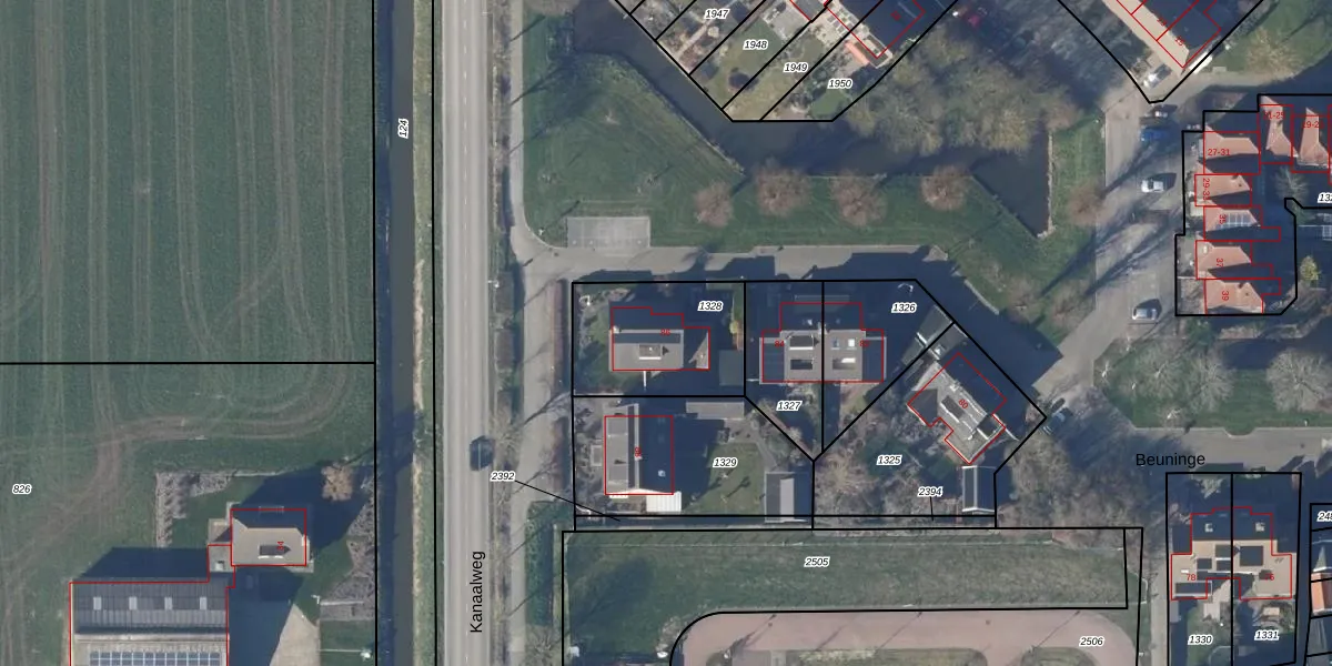 Het perceel waarop Beuninge 86 staat heeft een oppervlakte van 439 m². Dit is een groot perceel. De perceeloppervlakte wordt geregistreerd door het Kadaster. Gedetailleerde informatie over de maten van dit perceel kunt u vinden in het rapport Kadastrale kaart met maatvoering van Beuninge 86.