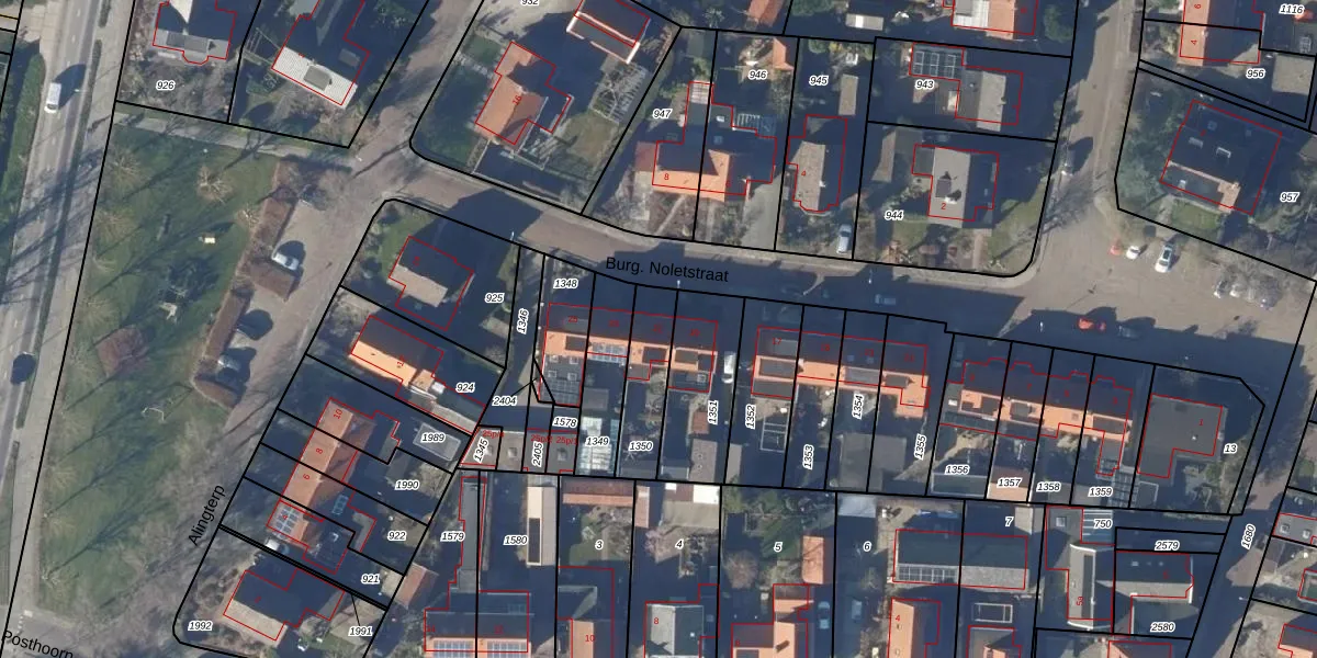 Het perceel waarop Burg. Noletstraat 21 staat heeft een oppervlakte van 185 m². Dit is een middelgroot perceel. De perceeloppervlakte wordt geregistreerd door het Kadaster. Gedetailleerde informatie over de maten van dit perceel kunt u vinden in het rapport Kadastrale kaart met maatvoering van Burg. Noletstraat 21.