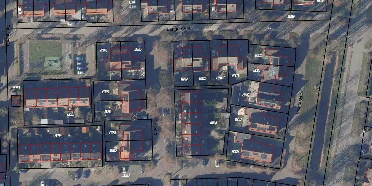 Het perceel waarop De Delff 1 staat heeft een oppervlakte van 988 m². Dit is een groot perceel. De perceeloppervlakte wordt geregistreerd door het Kadaster. Gedetailleerde informatie over de maten van dit perceel kunt u vinden in het rapport Kadastrale kaart met maatvoering van De Delff 1.