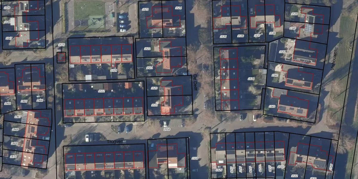 Het perceel waarop De Delff 6 staat heeft een oppervlakte van 275 m². Dit is een middelgroot perceel. De perceeloppervlakte wordt geregistreerd door het Kadaster. Gedetailleerde informatie over de maten van dit perceel kunt u vinden in het rapport Kadastrale kaart met maatvoering van De Delff 6.