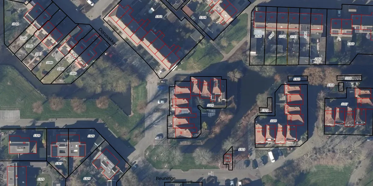 Het perceel waarop Dorusakker 31 staat heeft een oppervlakte van 768 m². Dit is een groot perceel. De perceeloppervlakte wordt geregistreerd door het Kadaster. Gedetailleerde informatie over de maten van dit perceel kunt u vinden in het rapport Kadastrale kaart met maatvoering van Dorusakker 31.