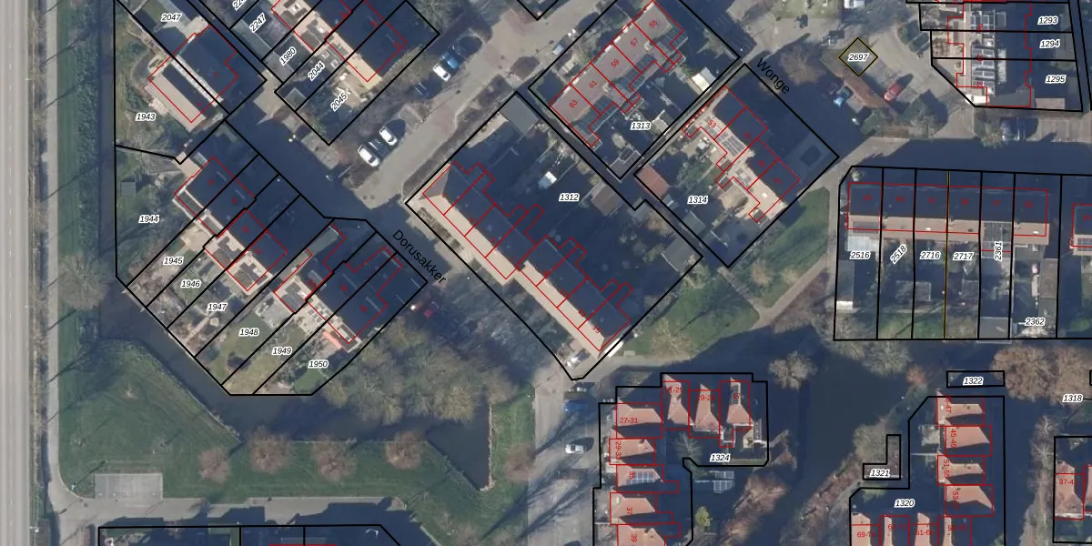 Het perceel waarop Dorusakker 9 staat heeft een oppervlakte van 1363 m². Dit is een zeer groot perceel. De perceeloppervlakte wordt geregistreerd door het Kadaster. Gedetailleerde informatie over de maten van dit perceel kunt u vinden in het rapport Kadastrale kaart met maatvoering van Dorusakker 9.