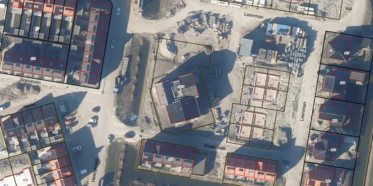 Het perceel waarop Leenman 22 staat heeft een oppervlakte van 1351 m². Dit is een zeer groot perceel. De perceeloppervlakte wordt geregistreerd door het Kadaster. Gedetailleerde informatie over de maten van dit perceel kunt u vinden in het rapport Kadastrale kaart met maatvoering van Leenman 22.