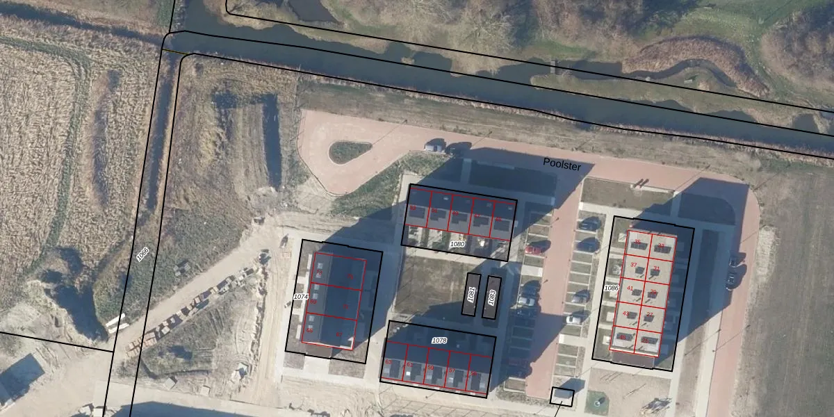 Het perceel waarop Poolster 53 staat heeft een oppervlakte van 382 m². Dit is een groot perceel. De perceeloppervlakte wordt geregistreerd door het Kadaster. Gedetailleerde informatie over de maten van dit perceel kunt u vinden in het rapport Kadastrale kaart met maatvoering van Poolster 53.