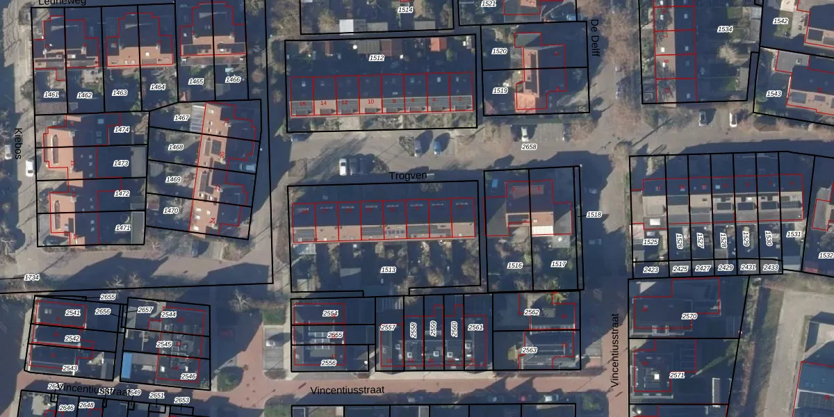 Het perceel waarop Trogven 9 staat heeft een oppervlakte van 1172 m². Dit is een zeer groot perceel. De perceeloppervlakte wordt geregistreerd door het Kadaster. Gedetailleerde informatie over de maten van dit perceel kunt u vinden in het rapport Kadastrale kaart met maatvoering van Trogven 9.