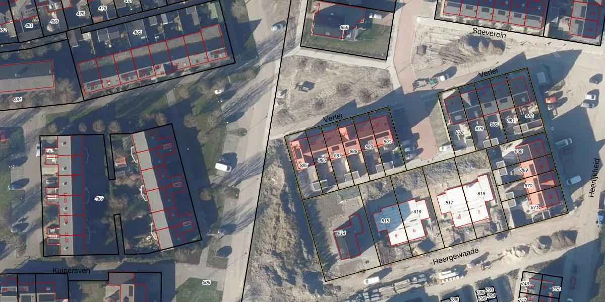 Het perceel waarop Verlei 21 staat heeft een oppervlakte van 156 m². Dit is een middelgroot perceel. De perceeloppervlakte wordt geregistreerd door het Kadaster. Gedetailleerde informatie over de maten van dit perceel kunt u vinden in het rapport Kadastrale kaart met maatvoering van Verlei 21.