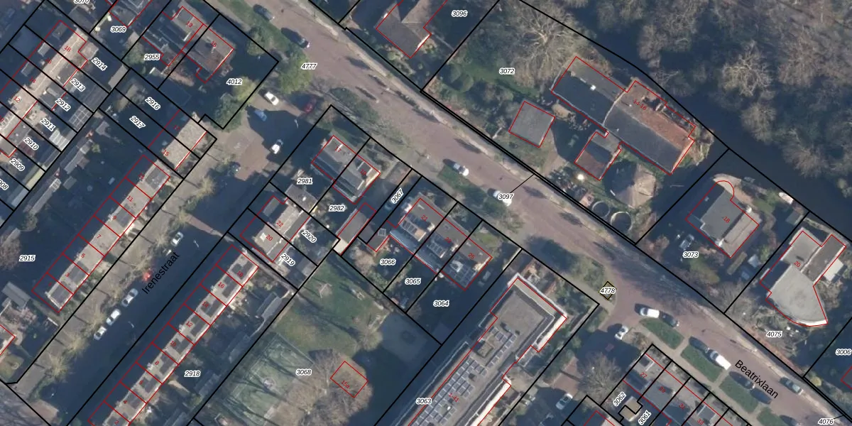 Gebruik de zoekbalk of klik op een perceel voor informatie over de adressen binnen dit perceel.