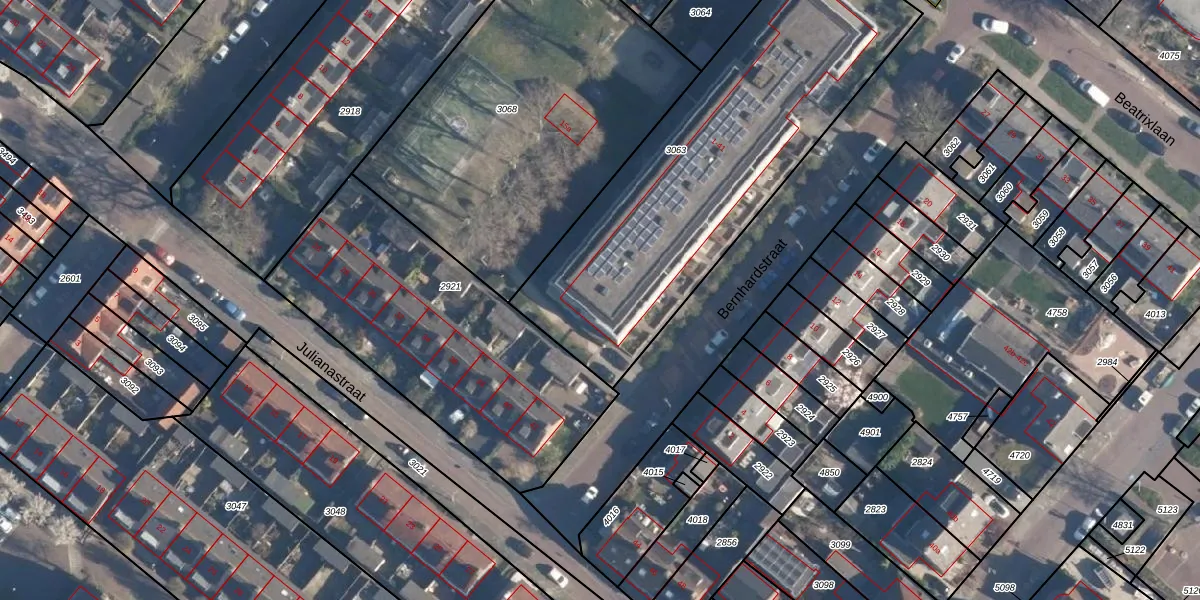 Het perceel waarop Bernhardstraat 17 staat heeft een oppervlakte van 1819 m². Dit is een zeer groot perceel. De perceeloppervlakte wordt geregistreerd door het Kadaster. Gedetailleerde informatie over de maten van dit perceel kunt u vinden in het rapport Kadastrale kaart met maatvoering van Bernhardstraat 17.