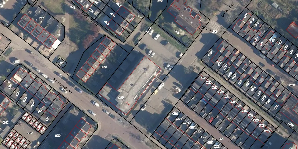 Het perceel waarop Endepoellaan 43 staat heeft een oppervlakte van 1830 m². Dit is een zeer groot perceel. De perceeloppervlakte wordt geregistreerd door het Kadaster. Gedetailleerde informatie over de maten van dit perceel kunt u vinden in het rapport Kadastrale kaart met maatvoering van Endepoellaan 43.