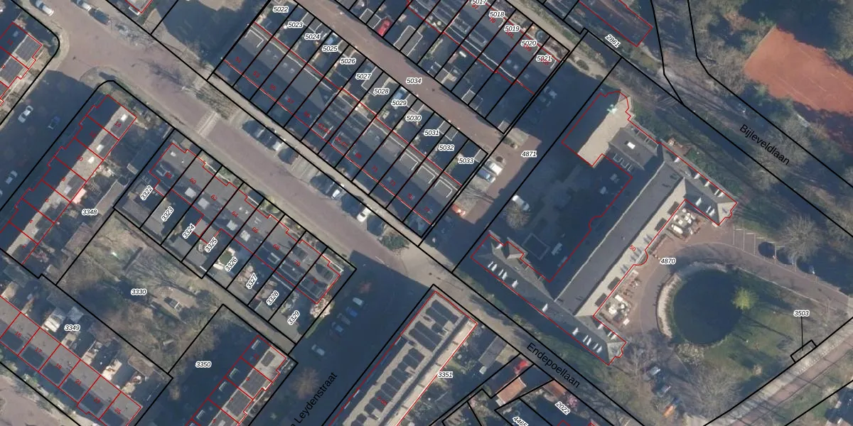 Gebruik de zoekbalk of klik op een perceel voor informatie over de adressen binnen dit perceel.