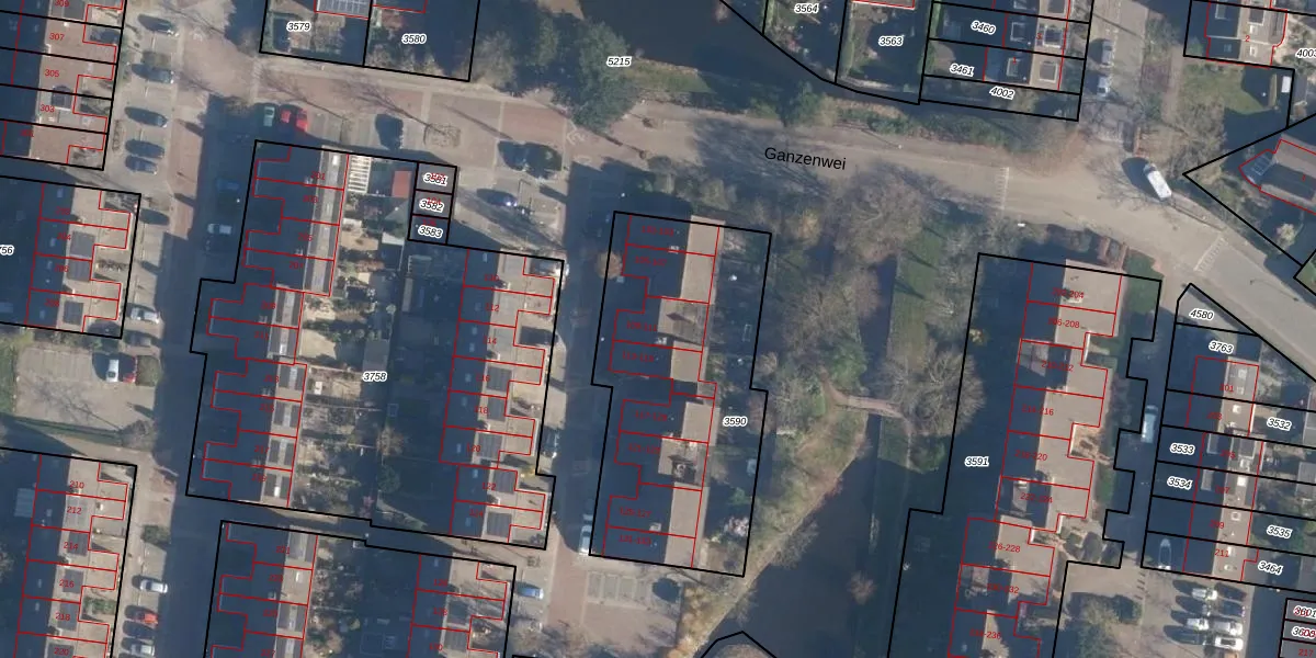 Ganzenwei 111 is gelegen op kadastraal perceel WMD01D3590. Deze kadastrale aanduiding is uniek en wordt gebruikt door het Kadaster om eigendomsrechten en andere zakelijke rechten vast te leggen. Het perceel maakt onderdeel uit van de kadastrale gemeente Warmond.
