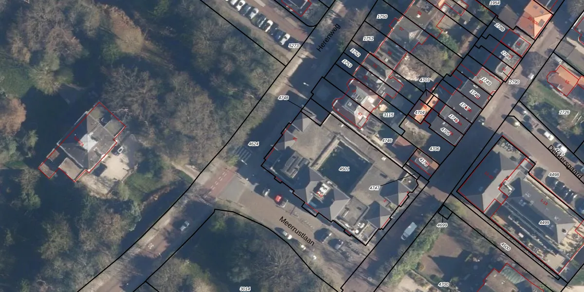 Herenweg 45 is gelegen op kadastraal perceel WMD01D4501. Deze kadastrale aanduiding is uniek en wordt gebruikt door het Kadaster om eigendomsrechten en andere zakelijke rechten vast te leggen. Het perceel maakt onderdeel uit van de kadastrale gemeente Warmond.