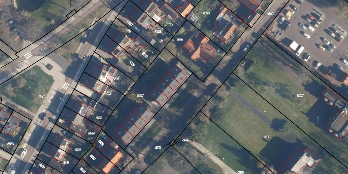 Het perceel waarop het adres ligt is WMD01-D-2707. De afkorting 'WMD01' staat voor kadastrale gemeente Warmond. Het perceel is kleiner dan gemiddeld in Warmond. Het perceel is 1195 m² groot, terwijl het gemiddelde ligt op 4593,83 m². Het grootste perceel in de kadastrale gemeente is 1,31 km². Het kleinste perceel heeft een oppervlakte van 0 m². Op het perceel zijn 8 adressen aanwezig. De huidige grenzen van het perceel zijn digitaal in de Basisregistratie Kadaster (BRK) geregistreerd op 19-10-2001.