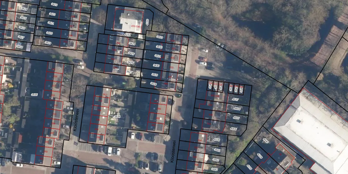 Gebruik de zoekbalk of klik op een perceel voor informatie over de adressen binnen dit perceel.