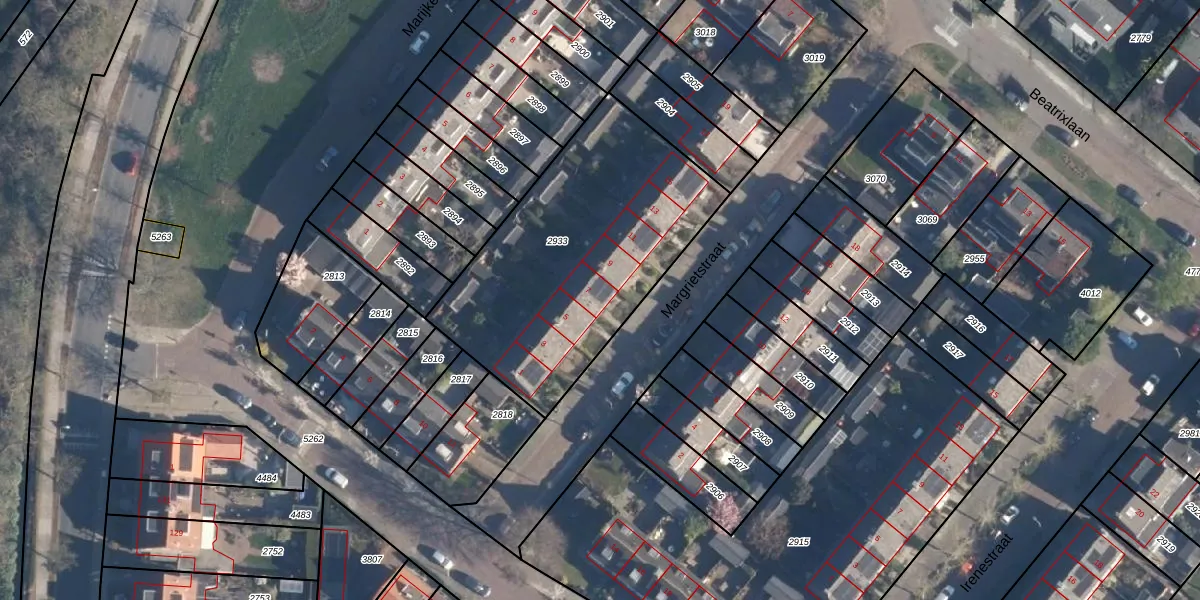 Het perceel waarop Margrietstraat 7 staat heeft een oppervlakte van 1281 m². Dit is een zeer groot perceel. De perceeloppervlakte wordt geregistreerd door het Kadaster. Gedetailleerde informatie over de maten van dit perceel kunt u vinden in het rapport Kadastrale kaart met maatvoering van Margrietstraat 7.