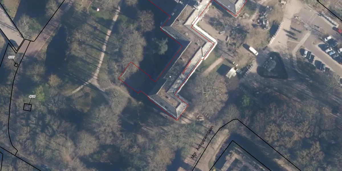 Het perceel waarop Mgr. Aengenentlaan 3-a-065 staat heeft een oppervlakte van 4,1 ha. Dit is een zeer groot perceel. De perceeloppervlakte wordt geregistreerd door het Kadaster. Gedetailleerde informatie over de maten van dit perceel kunt u vinden in het rapport Kadastrale kaart met maatvoering van Mgr. Aengenentlaan 3-a-065.