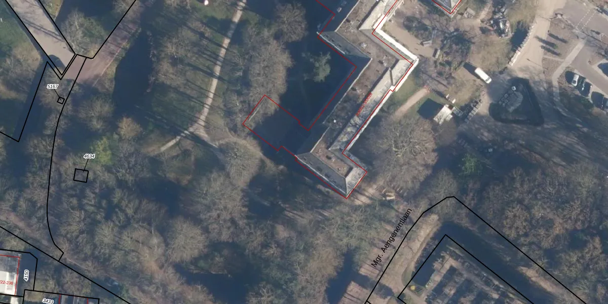 Het perceel waarop Mgr. Aengenentlaan 3-a-102 staat heeft een oppervlakte van 4,1 ha. Dit is een zeer groot perceel. De perceeloppervlakte wordt geregistreerd door het Kadaster. Gedetailleerde informatie over de maten van dit perceel kunt u vinden in het rapport Kadastrale kaart met maatvoering van Mgr. Aengenentlaan 3-a-102.