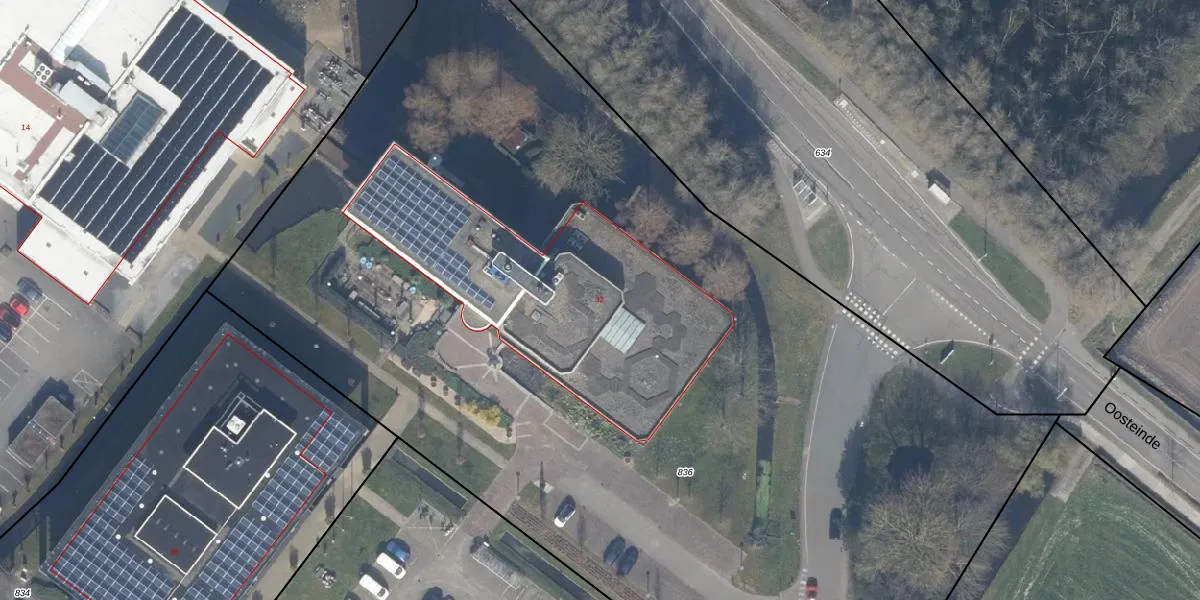 Het perceel waarop Oosteinde 32 staat heeft een oppervlakte van 8390 m². Dit is een zeer groot perceel. De perceeloppervlakte wordt geregistreerd door het Kadaster. Gedetailleerde informatie over de maten van dit perceel kunt u vinden in het rapport Kadastrale kaart met maatvoering van Oosteinde 32.