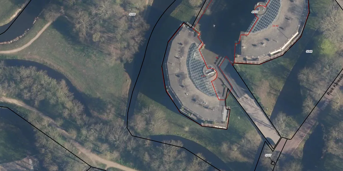 Het perceel waarop Park Klinkenberg 20 staat heeft een oppervlakte van 7463 m². Dit is een zeer groot perceel. De perceeloppervlakte wordt geregistreerd door het Kadaster. Gedetailleerde informatie over de maten van dit perceel kunt u vinden in het rapport Kadastrale kaart met maatvoering van Park Klinkenberg 20.