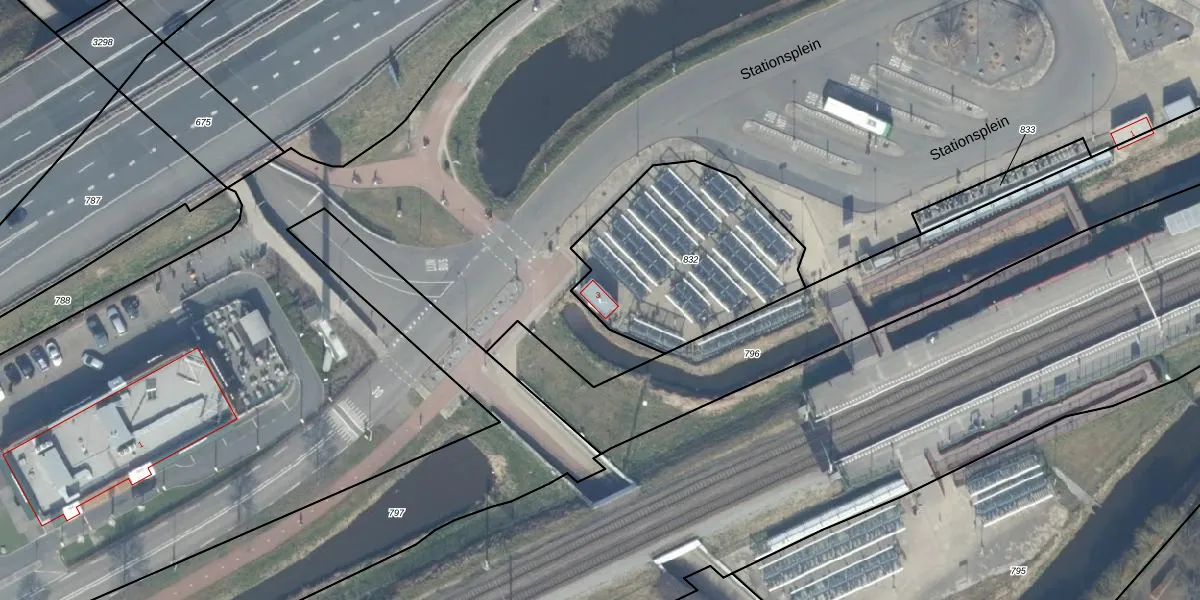 Het perceel waarop Stationsplein 3 staat heeft een oppervlakte van 830 m². Dit is een groot perceel. De perceeloppervlakte wordt geregistreerd door het Kadaster. Gedetailleerde informatie over de maten van dit perceel kunt u vinden in het rapport Kadastrale kaart met maatvoering van Stationsplein 3.