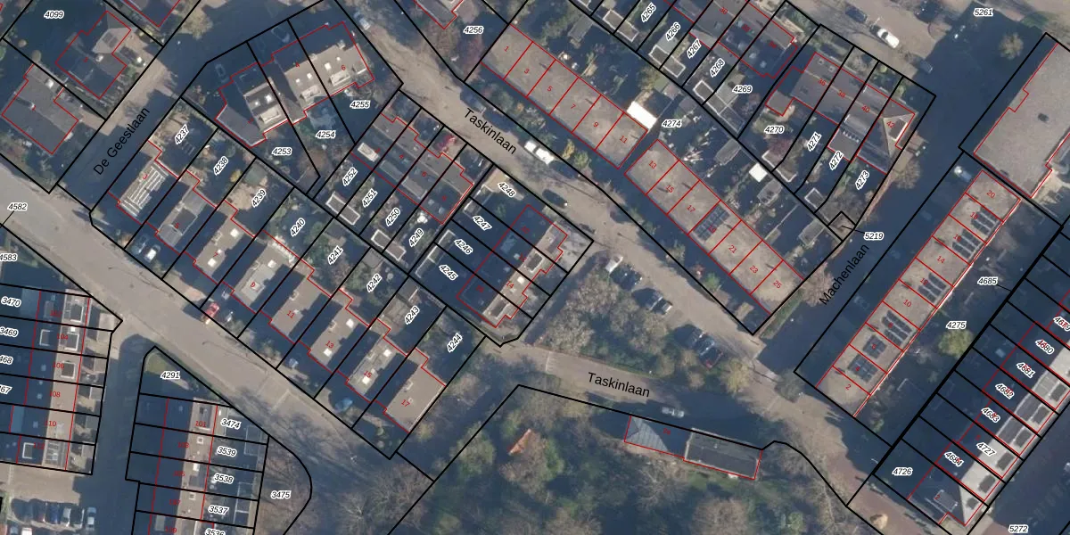 Het perceel waarop Taskinlaan 12 staat heeft een oppervlakte van 127 m². Dit is een middelgroot perceel. De perceeloppervlakte wordt geregistreerd door het Kadaster. Gedetailleerde informatie over de maten van dit perceel kunt u vinden in het rapport Kadastrale kaart met maatvoering van Taskinlaan 12.